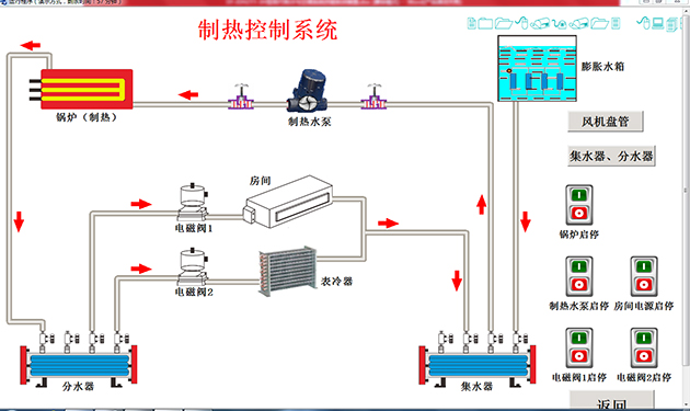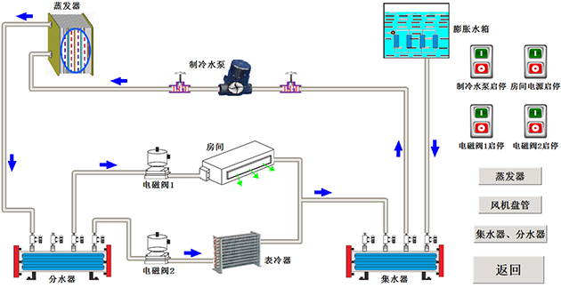每個終端處理機(jī)配置制冷系統(tǒng)流程板、控制電路流程板、溫度表及壓力表,可觀測到機(jī)組的全部控制電路。