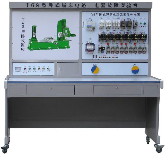 T68臥式鏜床智能培訓考核鑒定設備由多種電氣元器件組成各種電氣控制線路,智能答題器、網(wǎng)絡通訊模塊等組成的智能答題器和實訓考核臺等構成,集技能培訓與考核等功能為一體。故障點的產(chǎn)生采用計算機網(wǎng)絡技術,考核系統(tǒng)自動完成評分、恢復故障等功能,機床的工作原理及動作完全可以獨立進行?梢栽T68臥式鏜床智能培訓考核鑒定設備上進行各種電氣故障的檢查、排除的教學與實訓。