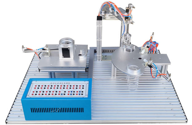 六邊形實(shí)訓(xùn)控制屏:實(shí)訓(xùn)控制屏采用六邊形結(jié)構(gòu)?蚣懿捎30 R的半圓形鋁型材經(jīng)過專用連接件組裝,頂面與底面采用§1.2mm厚的優(yōu)質(zhì)鋼板連接。三邊弧形作業(yè)面均配置有實(shí)訓(xùn)電源、氣源及PLC主機(jī)控制系統(tǒng),且相互獨(dú)立,互不干涉;控制面板按鍵為薄膜輕觸式設(shè)計(jì),具有漏電保護(hù)、短路保護(hù)功能。電源控制屏頂面采用10mm厚的鋁框包邊,內(nèi)置有直徑為850mm的多角度公共操作平臺(tái),公共操作平臺(tái)能360°旋轉(zhuǎn),能做120°定位,平臺(tái)頂板采用10mm厚的鋁板加工成型,能載重約60Kg的典型工作任務(wù)。