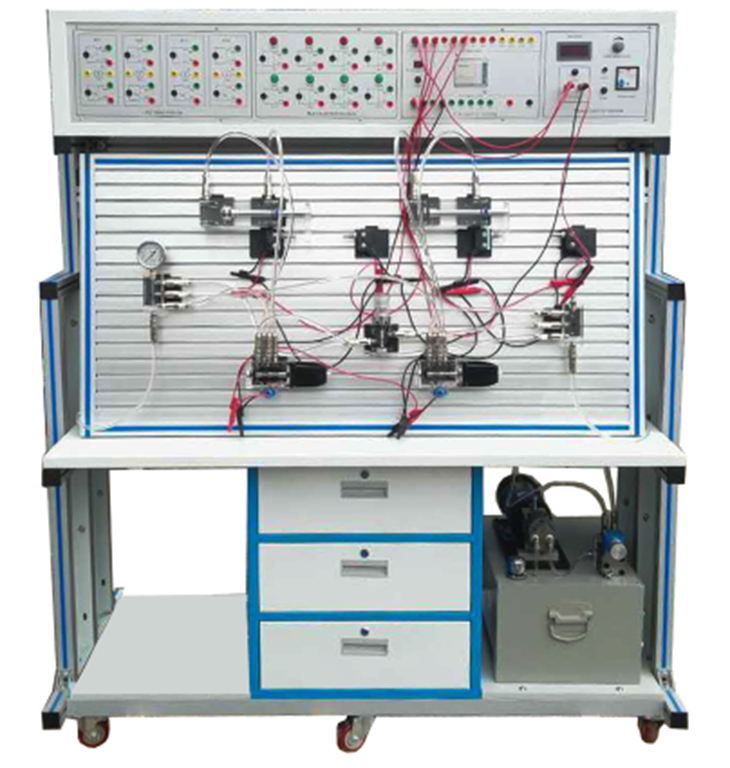 1、液壓PLC控制實(shí)驗(yàn)臺(tái)主要由實(shí)訓(xùn)桌、實(shí)訓(xùn)臺(tái)、液壓元件和電器控制器件、可編程控制器(PLC)等組件組成。