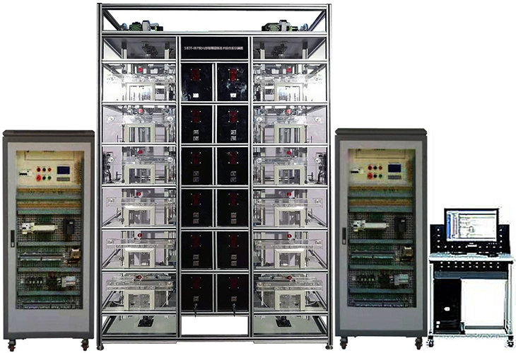電梯控制技術綜合實訓裝置是專門為職業(yè)院校開設的電氣自動化、機電一體化、機械制造與自動化等相關專業(yè)而研制的,裝置根據智能建筑中升降電梯的機構按照一定的比例縮小設計,所用設備、器件與實際電梯基本一致,采用槽鋼方管框架結構整體設計,正面使用透明有機玻璃面板,融低壓電氣、PLC、變頻調速、智能人機、傳感檢測、視頻監(jiān)控、智能考核系統(tǒng)等于一體,實現智能電梯復雜的開關量控制、時序邏輯控制。通過該裝置的操作訓練可考核學生掌握智能電梯的裝調與維護綜合能力,如電梯呼梯盒的安裝、井道信息系統(tǒng)的安裝、平層開關檢測位置調整、門機機構調整、電氣控制柜的器件安裝、接線、變頻器參數設置、PLC編程與調試、電梯群控功能調試、電梯故障排除、運行維護等,除了滿足專業(yè)實訓教學,還能開展技能考核以及職業(yè)技能競賽。
