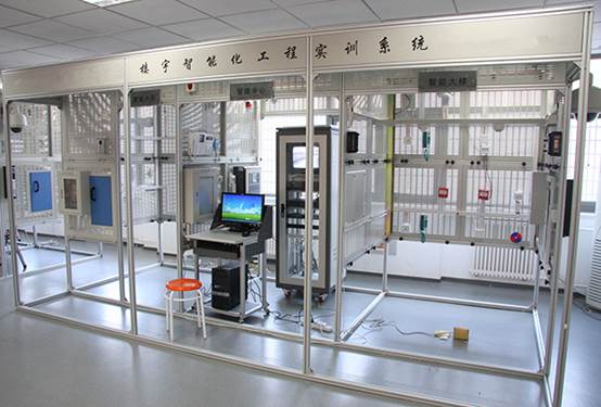 樓宇智能化工程實訓系統(tǒng)在結構上以智能建筑模型為基礎,包含了智能大樓、智能小區(qū)、管理中心和樓道等典型結構,涵蓋了對講門禁、安防、視頻監(jiān)控、消防、綜合布線和DDC監(jiān)控照明六個系統(tǒng),各系統(tǒng)既可獨立運行,也可實現(xiàn)聯(lián)動。通過此系統(tǒng)進行項目訓練,檢驗學生的團隊協(xié)作能力、計劃組織能力、樓宇設備安裝與調試能力、工程實施能力、職業(yè)素養(yǎng)和交流溝通能力等。