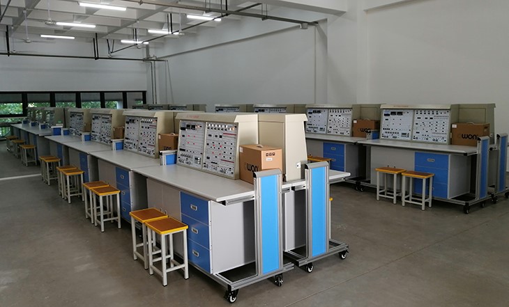 2、實(shí)驗(yàn)操作桌:采用工業(yè)鋁合金型材框架,面板厚度為25MM,優(yōu)質(zhì)密度板外防火板貼面,下面配有儲(chǔ)存柜,實(shí)訓(xùn)臺(tái)下方還設(shè)有四個(gè)帶剎車(chē)的萬(wàn)向輪,便于移動(dòng)和固定。
