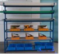 3、模塊中間模塊設(shè)計為貨架形式,配置有大量零件工具盒,適合安裝實訓使用。