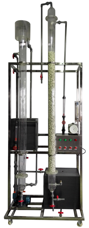 3.吹脫柱:尺寸Φ100×1600mm,有機(jī)玻璃,δ=5mm,內(nèi)裝拉西環(huán)顆粒填料。