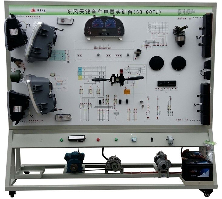 該設(shè)備采用全新東風(fēng)天錦柴油機(jī)整車電器實(shí)物為基礎(chǔ),充分展示汽車儀表系統(tǒng)、燈光系統(tǒng)、雨刮系統(tǒng)、喇叭系統(tǒng)、發(fā)動(dòng)機(jī)電器系統(tǒng)、起動(dòng)系統(tǒng)和充電系統(tǒng)等汽車電器各系統(tǒng)的組成結(jié)構(gòu)和工作過(guò)程。