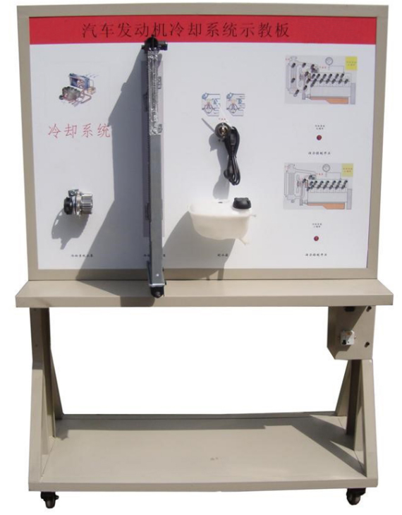 2.示教板面板采用耐創(chuàng)擊、耐污染、防火、防潮的高級鋁塑板,表面經(jīng)特殊工藝噴涂底漆處理;面板打印有永不褪色的彩色電路圖與工作原理示意圖;學員可直觀對照發(fā)動機冷卻系統(tǒng)結構原理圖和實物,認識和分析發(fā)動機冷卻系統(tǒng)的工作原理。