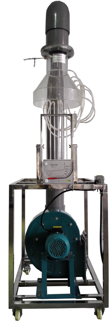 局部抽吸排風罩、畢托管、壓差計、低噪音多翼風機、管路、斜管微壓計、調(diào)節(jié)風門、高度尺、不銹鋼實驗臺架。
