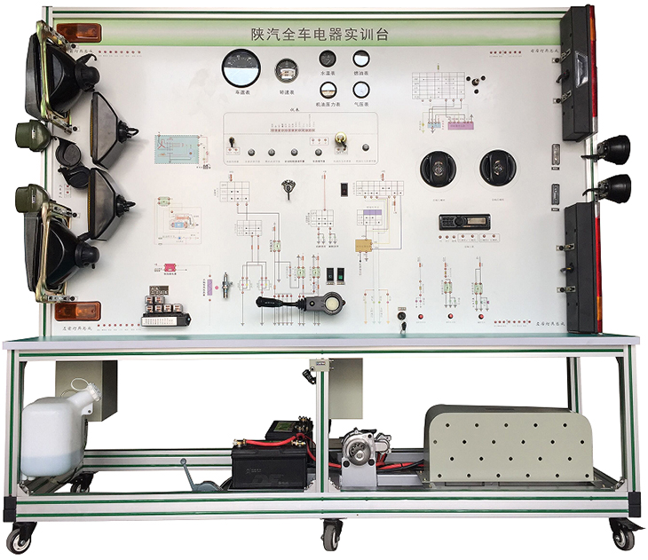 全車電路實訓(xùn)臺、該設(shè)備采用陜汽SX2190柴油機(jī)整車電器實物為基礎(chǔ),充分展示汽車儀表系統(tǒng)、燈光系統(tǒng)、雨刮系統(tǒng)、喇叭系統(tǒng)、發(fā)動機(jī)電器系統(tǒng)、起動系統(tǒng)和充電系統(tǒng)等汽車電器各系統(tǒng)的組成結(jié)構(gòu)和工作過程。