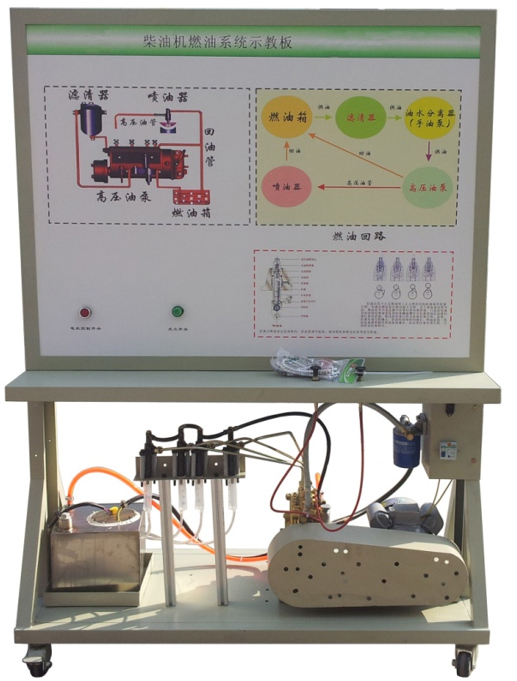 2.示教板面板采用耐創(chuàng)擊、耐污染、防火、防潮的高級鋁塑板,表面經(jīng)特殊工藝噴涂底漆處理;面板打印有永不褪色的彩色電路圖與工作原理示意圖;學(xué)員可直觀對照電路圖和實物,認(rèn)識和分析柴油發(fā)動機燃油噴射系統(tǒng)的工作原理。