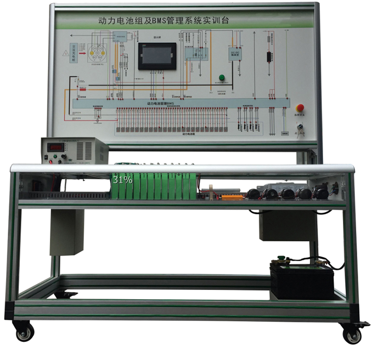 動力電池管理系統(tǒng)實訓臺選用新能源車輛磷酸鐵鋰 動力電池包,單體電池(3.2V20AH,共24串),帶CAN總線的一體機BMS電池管理系統(tǒng),有被動均衡功能;真實地呈現(xiàn)了磷酸鐵鋰動力電池包核心零部件之間的連接控制關系、安裝位置和運行參數(shù),以及高壓系統(tǒng)安全注意事項,并培養(yǎng)學員對磷酸鐵鋰動力電池包(BMS)故障分析和處理能力。適用于了解與驗證電動汽車的動力電池參數(shù)進行實時監(jiān)控、故障診斷、SOC估算、短路保護、絕緣檢測、充放電控制、均衡等功能,并通過CAN總線的方式與帶CAN通訊的車載充電機進行信息交互,保障電動汽車高效、可靠、安全運行的BMS教學實訓實驗。