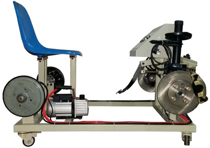 2.實(shí)訓(xùn)臺(tái)安裝有真空泵,提供真空助力的動(dòng)力源;前后制動(dòng)管路上安裝有壓力表,實(shí)時(shí)顯示前后制動(dòng)分泵的壓力變化。