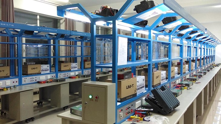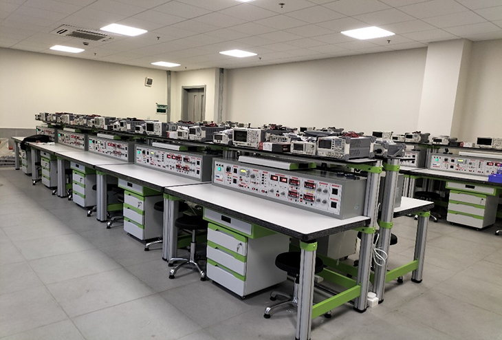 電子工藝實習室是供學生焊接練習、電子產(chǎn)品組裝調(diào)試操作的實驗室,學生進行焊接操作。配備的儀器設(shè)備主要有直流穩(wěn)壓電源、示波器、萬用表、工具箱等。為了改善實習室的空氣環(huán)境衛(wèi)生,還專門配備了抽風系統(tǒng)。開設(shè)的課程有《電子工藝實習》、《電工實習》,包括電路元件的選配、電子產(chǎn)品的安裝、焊接和性能測試等環(huán)節(jié)。電子工藝實驗實訓(xùn)室設(shè)備主要面向汽車、機械、電信、電氣、計算機、經(jīng)濟、管理等學院的學生,培養(yǎng)學生的動手實踐能力、分析問題和解決問題的能力以及創(chuàng)新精神。