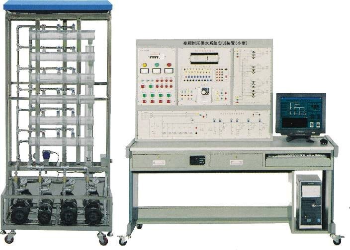 變頻恒壓供水系統(tǒng)實(shí)訓(xùn)裝置,集PLC、變頻調(diào)速、過程控制、工程組態(tài)技術(shù)于一體。它由六層住宅消防、生活供水系統(tǒng)(實(shí)物模型),控制平臺兩大部分組成,包含了可編程控制器、變頻器、變頻磁力驅(qū)動泵、休眠泵、消防泵、壓力變送器、壓力儀表、輸水管道、消防栓、家用水龍頭、蓄水池等工程設(shè)備?刂破脚_采用PLC+變頻器的開放式控制結(jié)構(gòu),可以完成多種模式下的樓層恒壓供水實(shí)訓(xùn)實(shí)訓(xùn),為教學(xué)研究變頻恒壓供水技術(shù)提供一個開放的操作平臺。它是一款適合于大學(xué)及中、高職院校電氣自動化、樓宇自動化、建筑電氣、智能建筑等專業(yè)的綜合型技能實(shí)訓(xùn)考核設(shè)備。